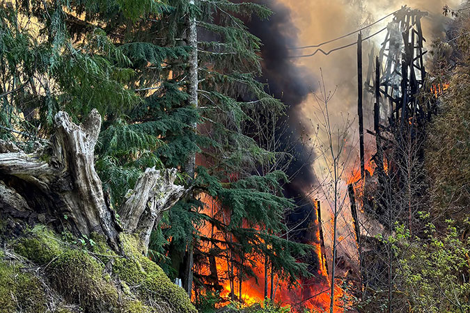 Holding out hope that the structure in question might be the smaller of two bridges on the rail line running near Mt. Rainier, Maher and a couple of MRSR employees drove as close to the site as possible. Still a mile from the fire, they learned from volunteer firefighters that the larger bridge was burning.